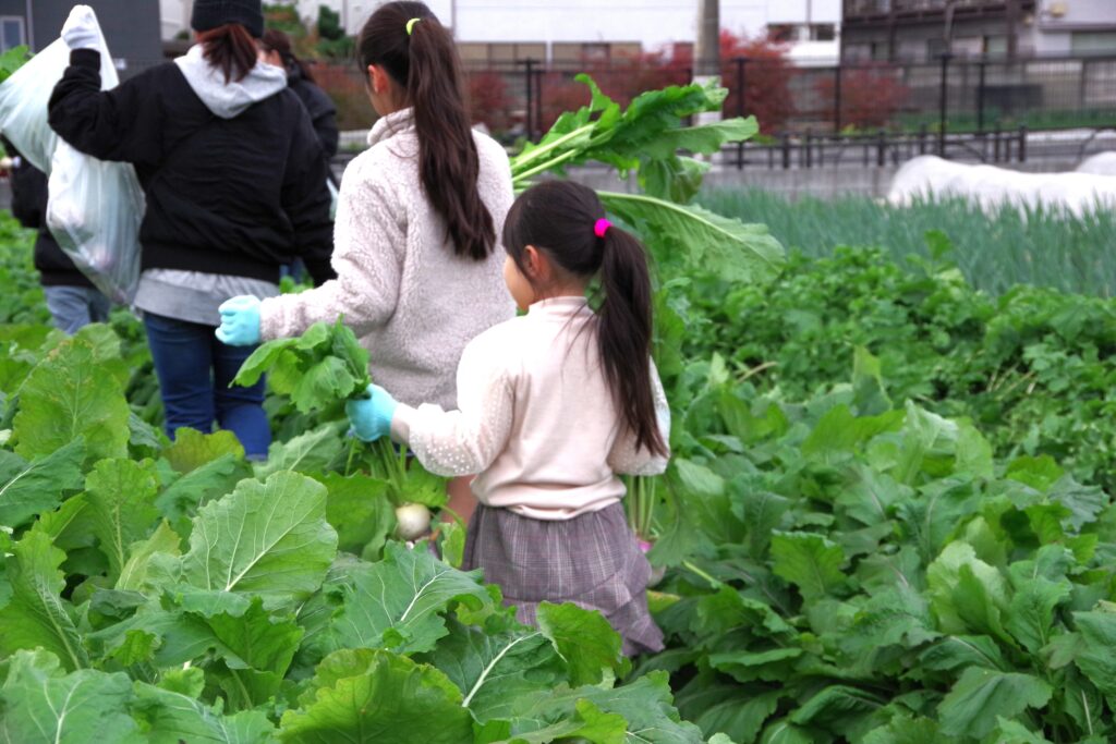 練馬区はJA東京あおばと協力し、区内の西貝伸生さんの畑で、区内在住のひとり親家庭向けに「親子で収穫体験」を開きました。当日は19組42人の親子が参加し、JA職員による区内農業の特徴の説明後、ダイコンやネギ、ニンジン、カブの収穫を楽しみました。カブは白カブや赤カブなど3品種を収穫し、園主の西貝さんからは品種ごとのおすすめの調理法も説明がありました。