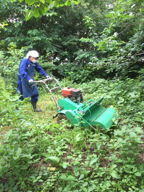 練馬地区振興センターは6月24日(金)、管内の圃場の除草作業を行いました。この日は1反程の裏庭及び果樹圃場を、ハンマーナイフと刈払機で作業しました。元々は組合員の営農支援のため、同センターを窓口にJAの保有するトラクターや動力草刈り機、ユンボ等の農機を有料で貸出をする利用事業を行っていましたが、近年は高齢化等もあり農機作業のオペレーション依頼が増加しています。同センターは旧練馬農協時代から積極的に利用事業を行っており、年間を通じ依頼を受け付けています。