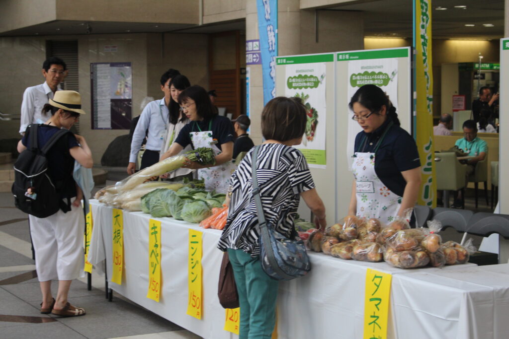 また、パネル展示にあわせてJAは20日(月)と21日(火)の2日間、区内産農産物の即売会をあわせて開催しました。トマトやナス、トウモロコシやエダマメなど朝採れの新鮮な地場産野菜が並び、両日ともに盛況で用意した野菜は2時間ほどで売り切れました。