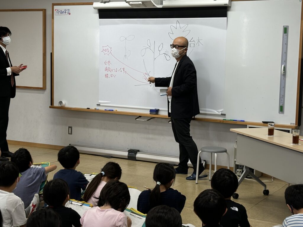 江戸東京野菜の一つ「雑司ヶ谷ナス」を栽培する石神井地区の本橋朋和さんが6月4日、豊島区立の小学校の4年生を対象に出前授業を行いました。同校では毎年、地元の神社から雑司ヶ谷ナスの苗を譲り受けて栽培に取り組んでいます。当日は、雑司ヶ谷ナスの特徴をはじめ、病害虫防除、仕立てや切り戻し等の技術的な内容も説明していました。