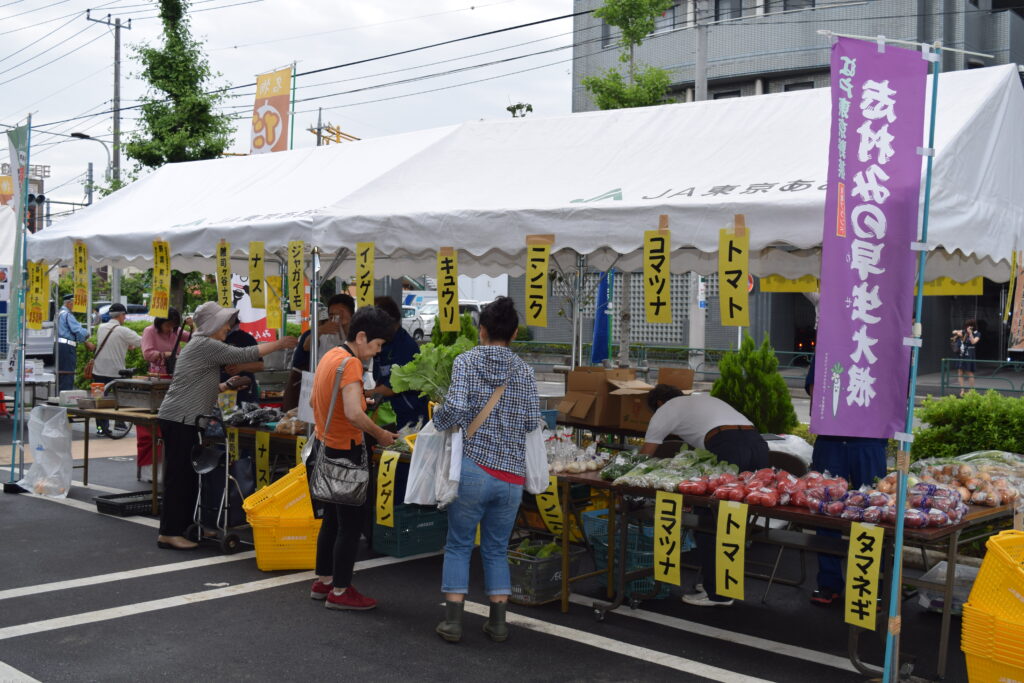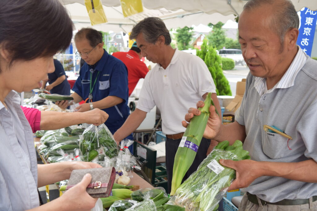 青壮年部員・野菜部会員による採れたての夏野菜販売のほか、女性部員による作りたてのまんじゅう、青壮年部員による練馬野菜餃子の実演販売など会場を盛り上げました。