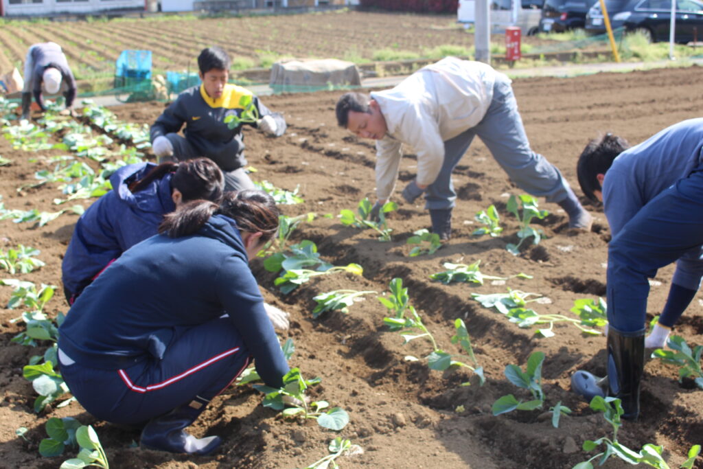 新入職員からは、作業の中で疑問に感じたことを積極的に質問する場面も見られ、農業体験が初めての職員は、「農作業は難しいと感じる点もあったが、実際に土に触れることができて、有意義だった」と話していました。また、研修期間中は農業体験だけでなく直売所でも研修を行い、担当職員からプライベート商品や支店での即売会等のイベントについての説明を受け、農家が作った地場産農産物をJAの直売所で販売することの重要性を学びました。