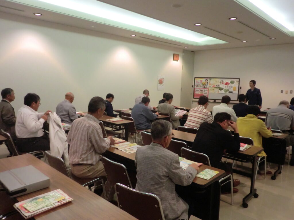 今回の研修で、サカタのタネでは管内の土壌に合ったトマト・トウモロコシ・ブロッコリーの3点の新品種について学び、参加した部員からはタネの生育日数などについて積極的に質問する場面も見られました。また、JA大井川の直売所「ファーマーズマーケットまんさいかん」は、地場農畜産物だけでなく、漬物や惣菜や弁当といった農産加工品についても品揃えが豊富で、午前中の混雑している時間帯を視察し、「良い刺激となった。取り入れられるところは参考にしたい」と話す部員もいました。