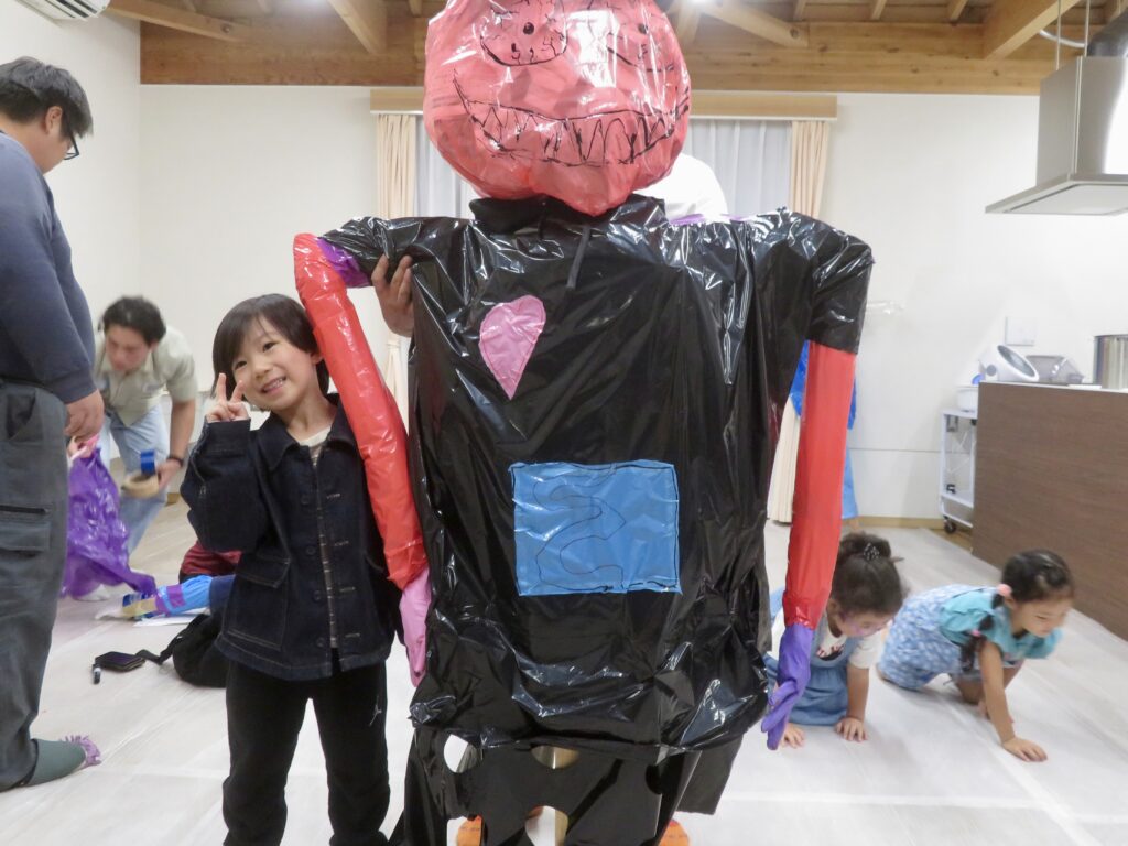 参加者親子は、思い思いにカカシを作成。完成したカカシは、猫、海賊、魔女、マスコットキャラクターをアレンジしたものなど、いつも以上にバラエティ豊かなラインナップとなりました。