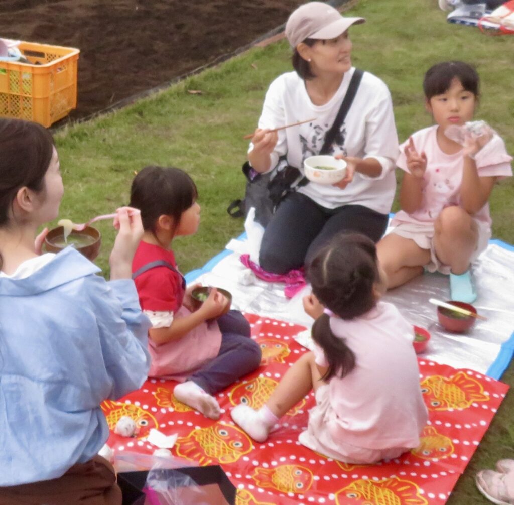 参加者は「子どもは普段、ナス嫌いで絶対に食べないのに、このスープだと美味しく食べられてとても嬉しい」と話しました。一緒にいた子どもも「やっぱり採れたては違うね」と話しまた。