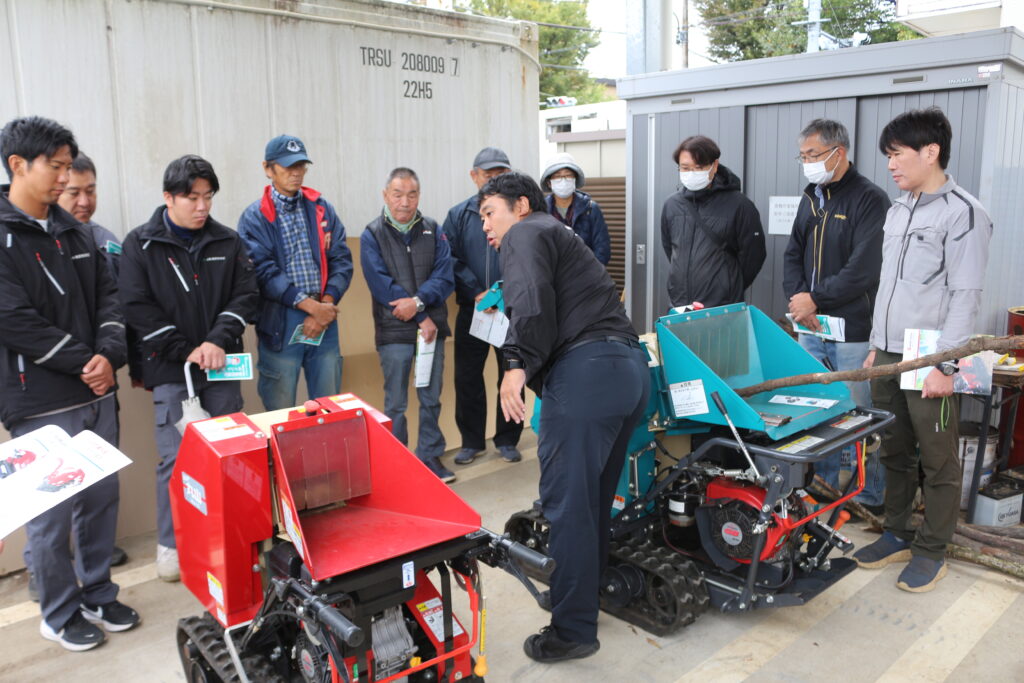 10月22日(水)、管内生産者にチッパー安全講習会を開き、管内生産者8人のほか、JA職員も参加しました。講師は株式会社丸山製作所の社員が務め、安全作業のポイントについて実践を交えて説明しました。特に、「巻き込まれ事故」「はね返り事故」が多く、注意を促しました。また、作業には大きな音が発生するので、作業をする時間にも配慮が必要になります。