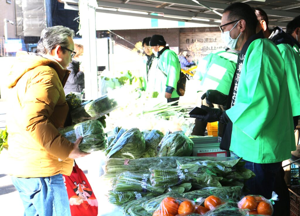12月10日(水)と15日(月)、中村橋支店、田柄支店、関町支店の金融店舗店先や駐車場で地場産野菜の販売を中心とした即売会を開きました。開催には各地区の青壮年部が協力。