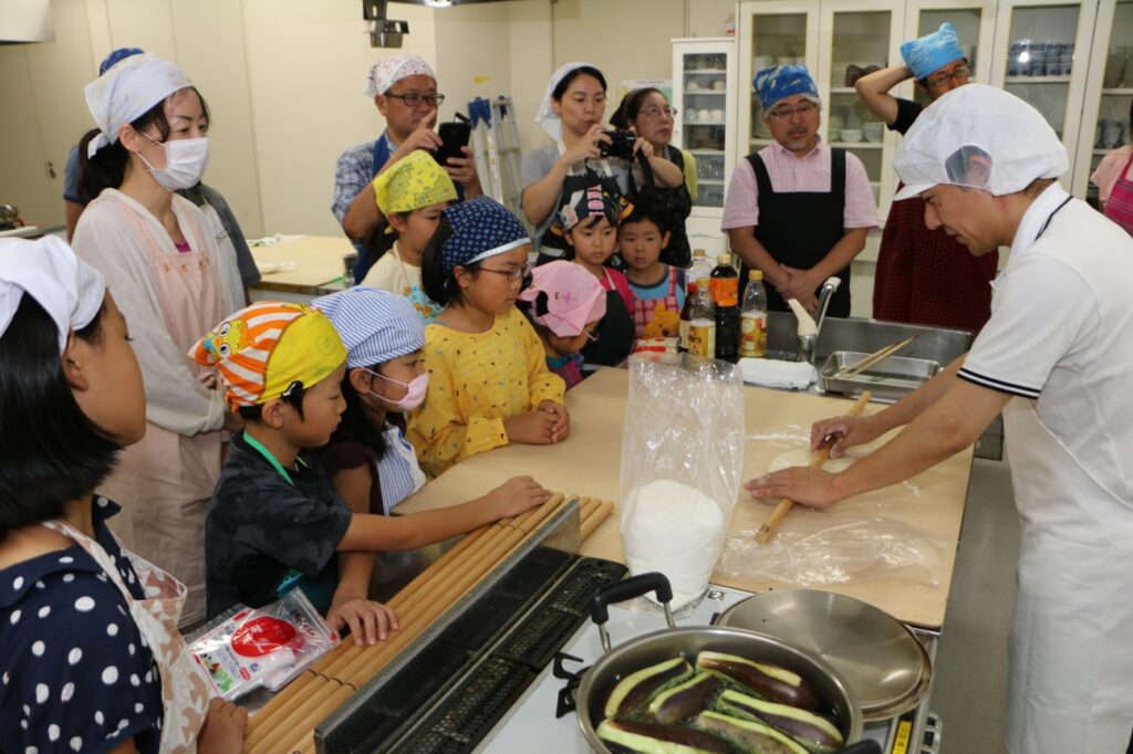 最終回となる今回は、前回の活動で収穫した小麦を使用しうどん作り教室を行い、18人が参加しました。参加者は足踏み、のばしといった慣れない作業に悪戦苦闘しながらも楽しく作り方を学びました。「きれいに切るのが難しかったけど、おいしかった」「種から育てて食べることができ、貴重な体験となった」と好評でした。