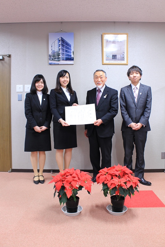 学生たちは、調査・研究の結果をマニュアルにまとめ、JAに贈呈されました。榎本組合長から、学生の皆さまに感謝状を贈呈しました。