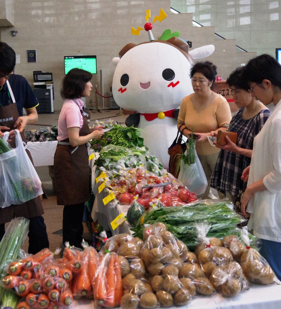 即売会では、練馬区公式アニメキャラクター「ねり丸」が駆けつけ、2日間でトウモロコシや枝豆を含む旬の夏野菜15品目1100点が販売されました。