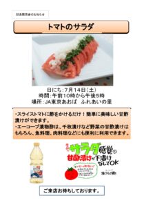 7月14日(土)練馬区の総合園芸センターふれあいの里で「地場野菜とエーコープマーク商品の試食販売」を開催いたします。