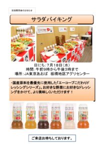 7月18日(水)板橋地区アグリセンタ―にて「地場野菜とエーコープマーク商品の試食販売」を開催いたします