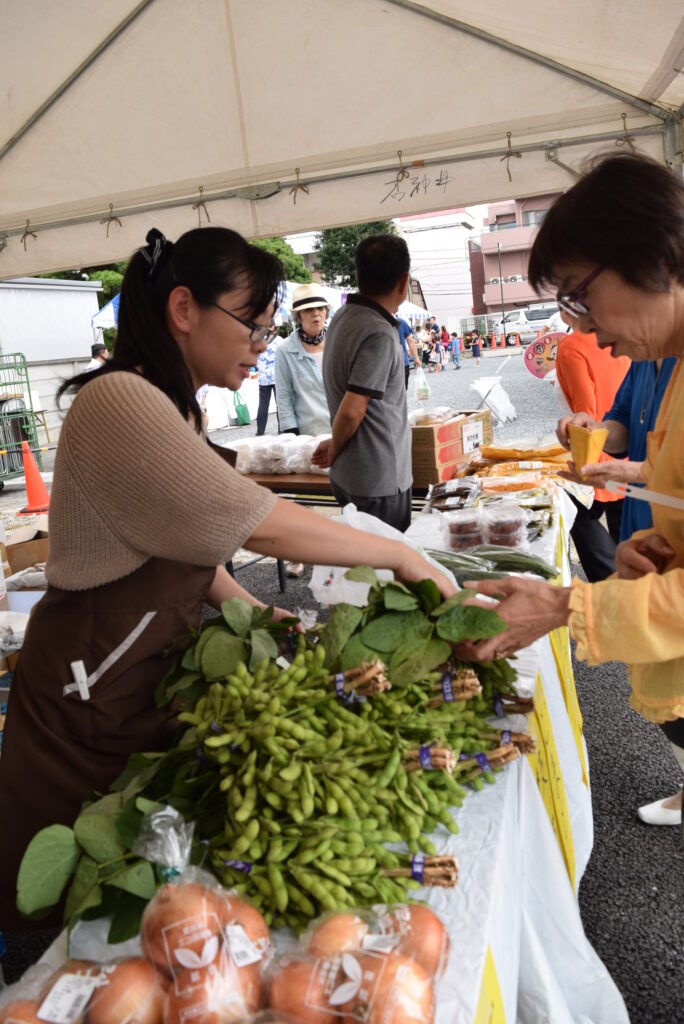 JAは、夏野菜を中心に、プライベート商品や駄菓子類、漬物等も販売し、イベントを盛り上げました。中でも朝採れの枝豆は、途中何度か追加入荷するほどの人気でした。同イベントにはJAの他にも地元企業等も数多く出店しており、地場産農産物を使った料理を振る舞う出店者も多く見られました。