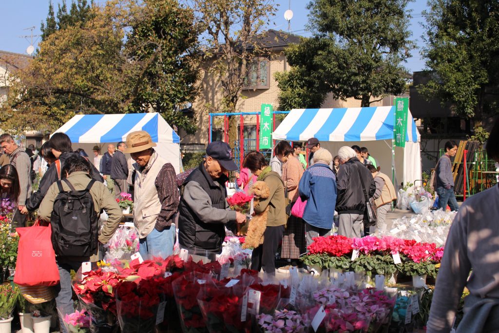 会場の板橋区立赤塚小学校では、植木市や売店に多くの方が集まりました。