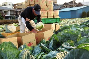 今年度は暖冬の影響により品質の揃ったキャベツの提供が難しい中、区内生産者6名が、2日間で合計457箱(1箱約10㎏/約3,000玉)のキャベツを出荷しました。
