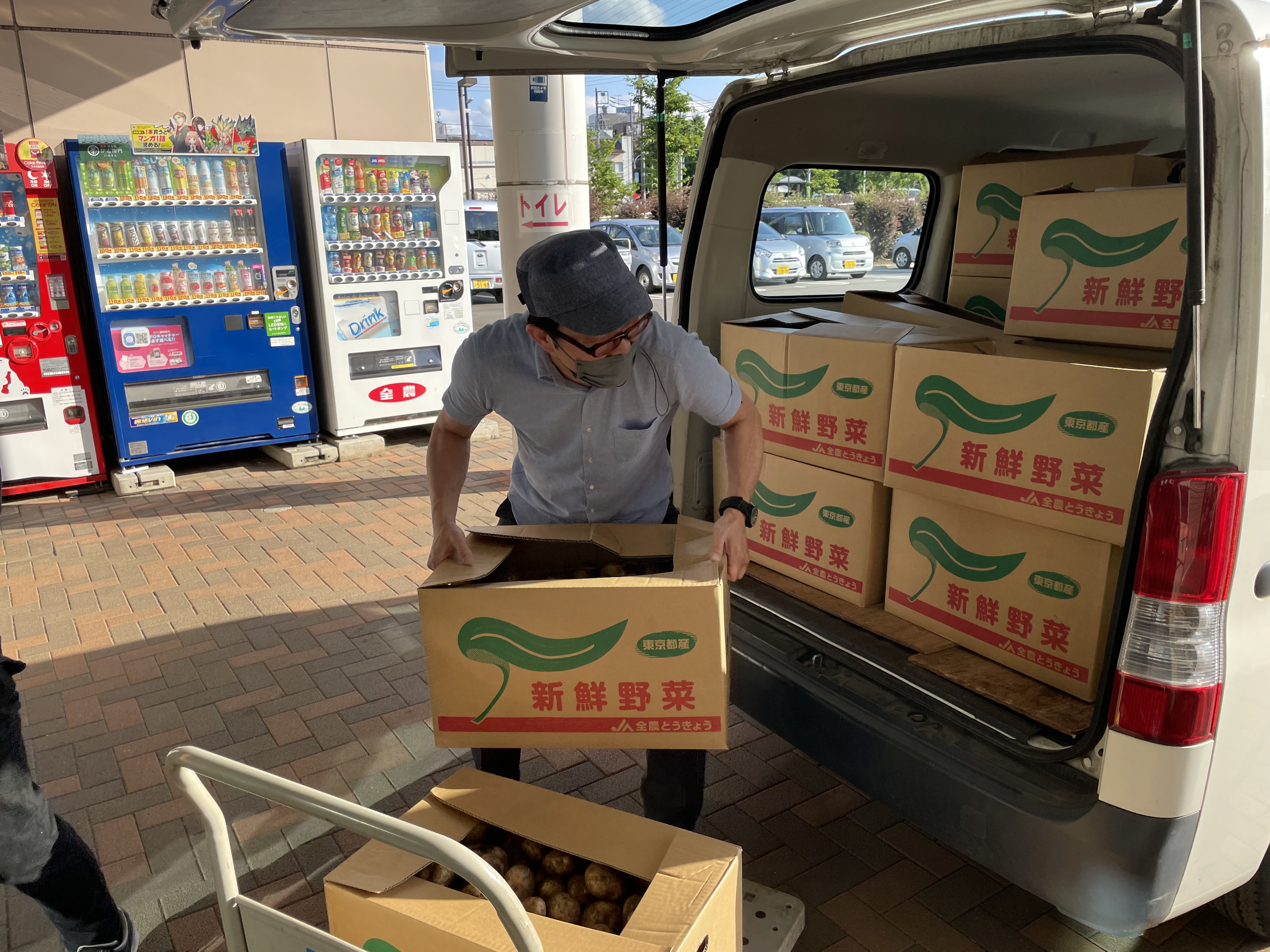 今回の野菜は、練馬区高松にある、JA東京あおばと練馬区が共同で運営する(仮称)農の風景公園で7月2日に行った収穫体験イベントにて収穫したジャガイモ270kgです。