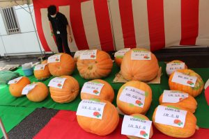 参加数は18人。優勝したカボチャは、61.8キロで、昨年の優勝者よりも約8キロ重たいカボチャでした!
