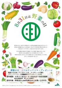毎年8月31日は8・3・1にちなんで「野菜の日」です」