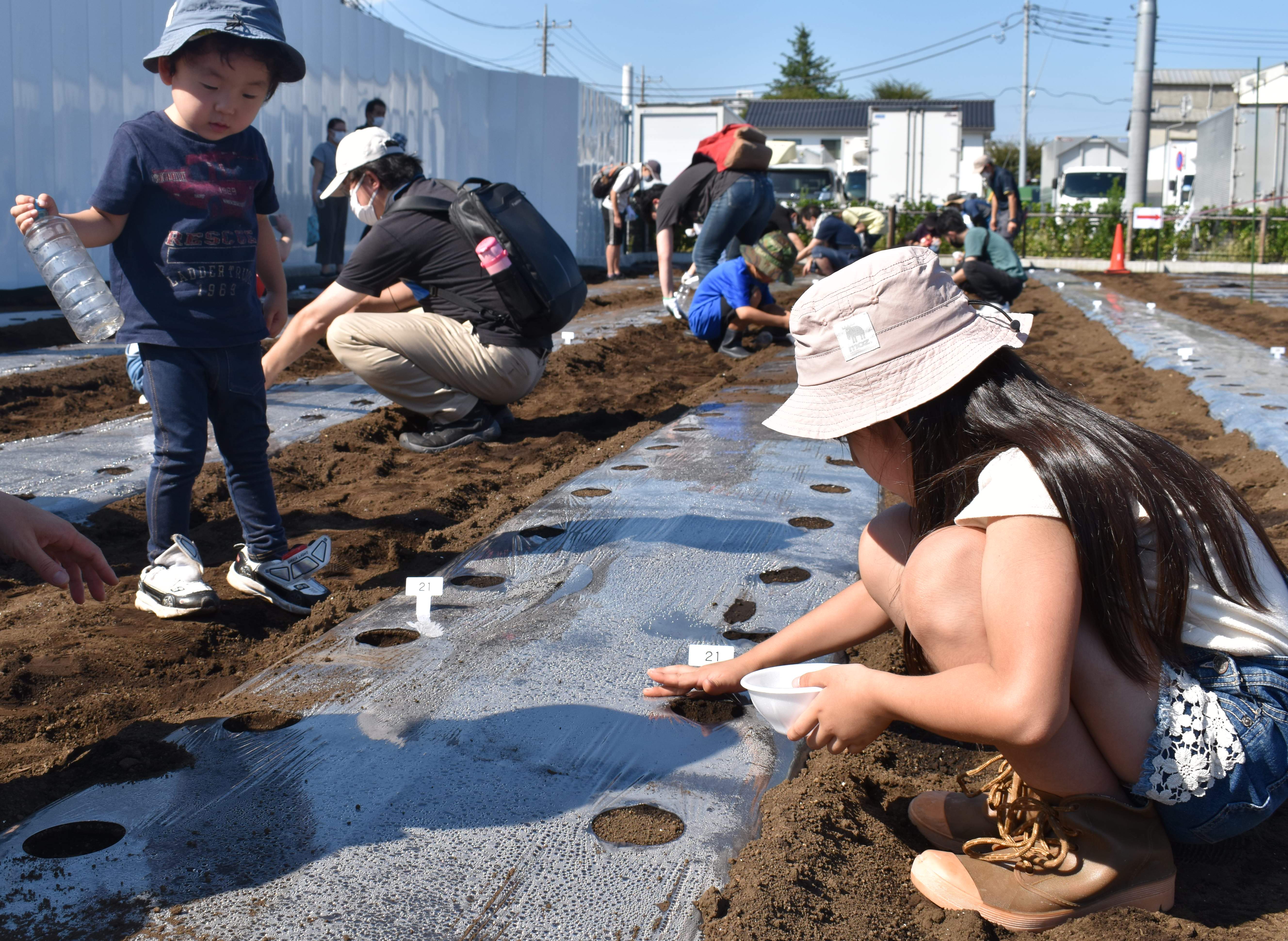 JA東京あおばは、9月10日、練馬区高松にある(仮称)農の風景公園で、練馬大根の種まき体験を行ない、地域住民75組206名が参加しました。