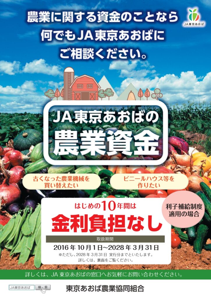 長期で低利な公的資金の取次ぎおよび取り扱いをJA東京あおばでは行っております。