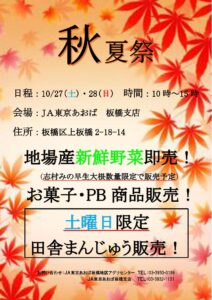 中村橋支店の貯金デーに合わせて、地場産農産物の即売会を開きます。