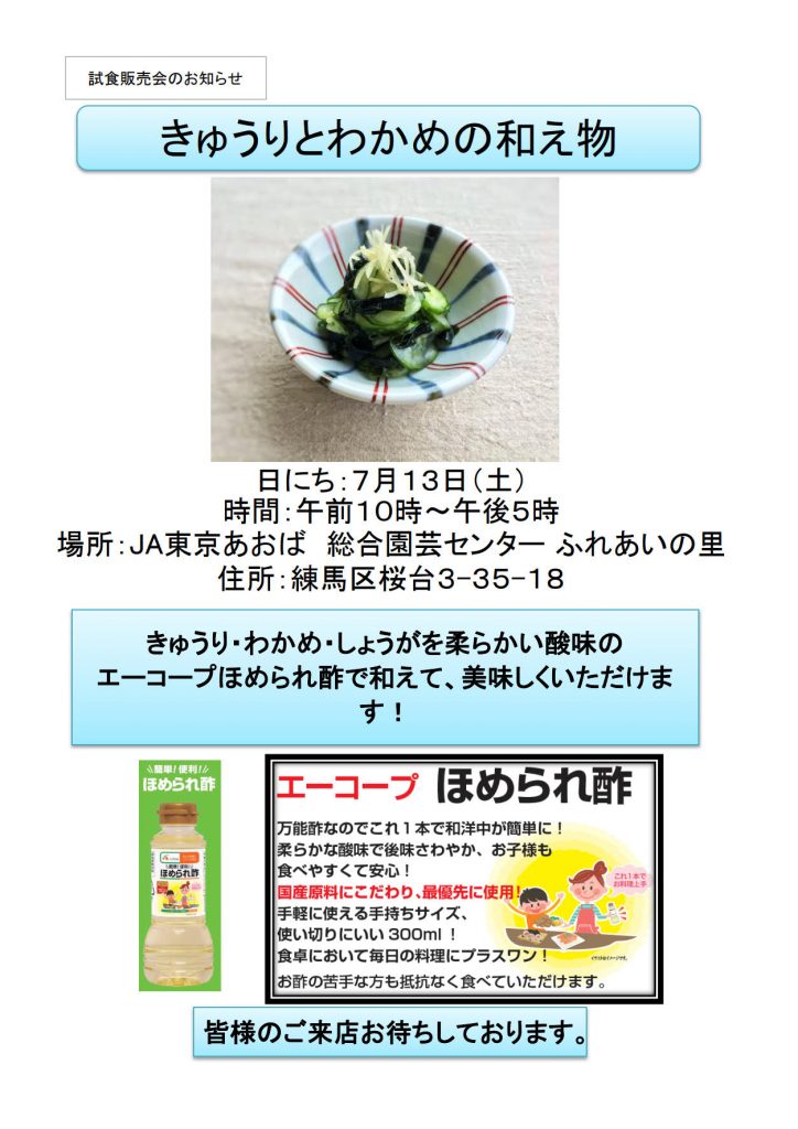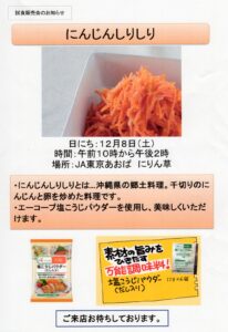 地場野菜とエーコープマーク商品の試食販売(とれたて村石神井)
