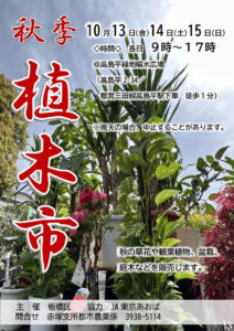 JA東京あおばは植木市を開催します。また、志村みの早生大根を販売します。