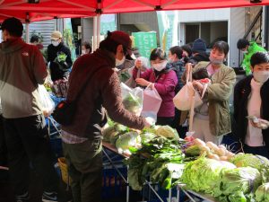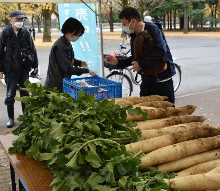 同マルシェのテーマは「旬に寄り道」。とれたての新鮮な農産物を気軽に手に入れ、練馬の旬を堪能する目的で毎年11月頃開催しています。駅やバス利用者がフラッと立ち寄る様子も見られました。