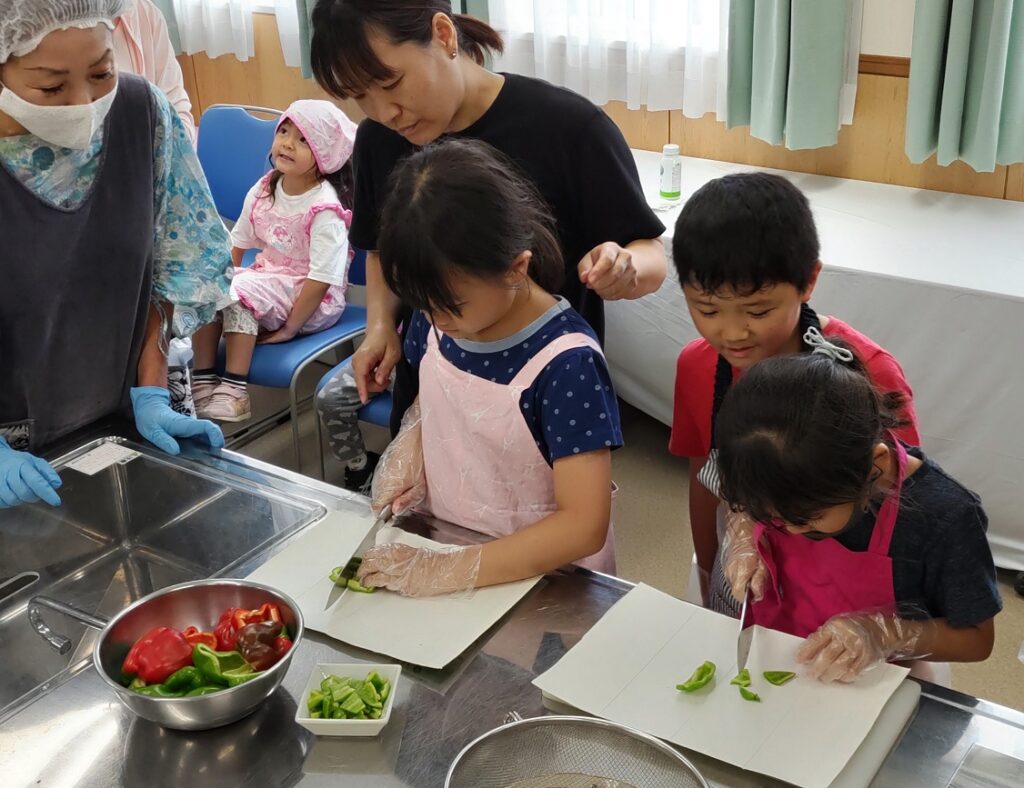 子どもたちは食育推進ボランティアと協力してチーズ入りダッカルビと季節野菜の味噌チャウダーを調理しました。その後、参加した親子、食育推進ボランティア、同飲食店の担当者と会話をしながら楽しく食事をしました。